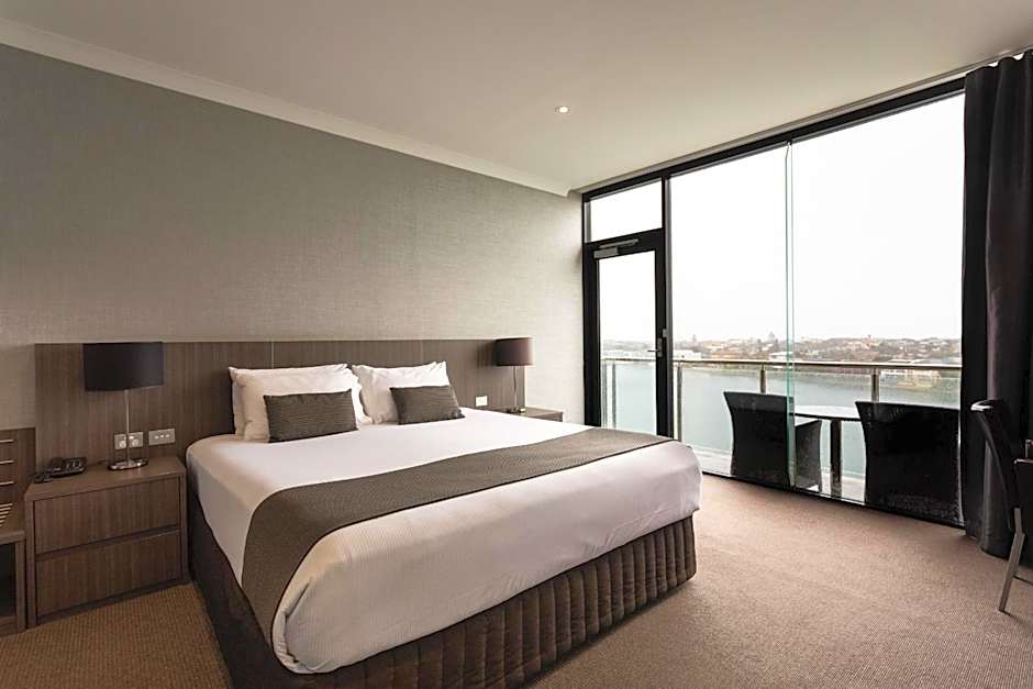 The Superior Suites feature a stylish bathroom, complete with walk-in shower and rainfall shower head, working desk space, plasma TV, modern furnishings, private balcony and lake views.